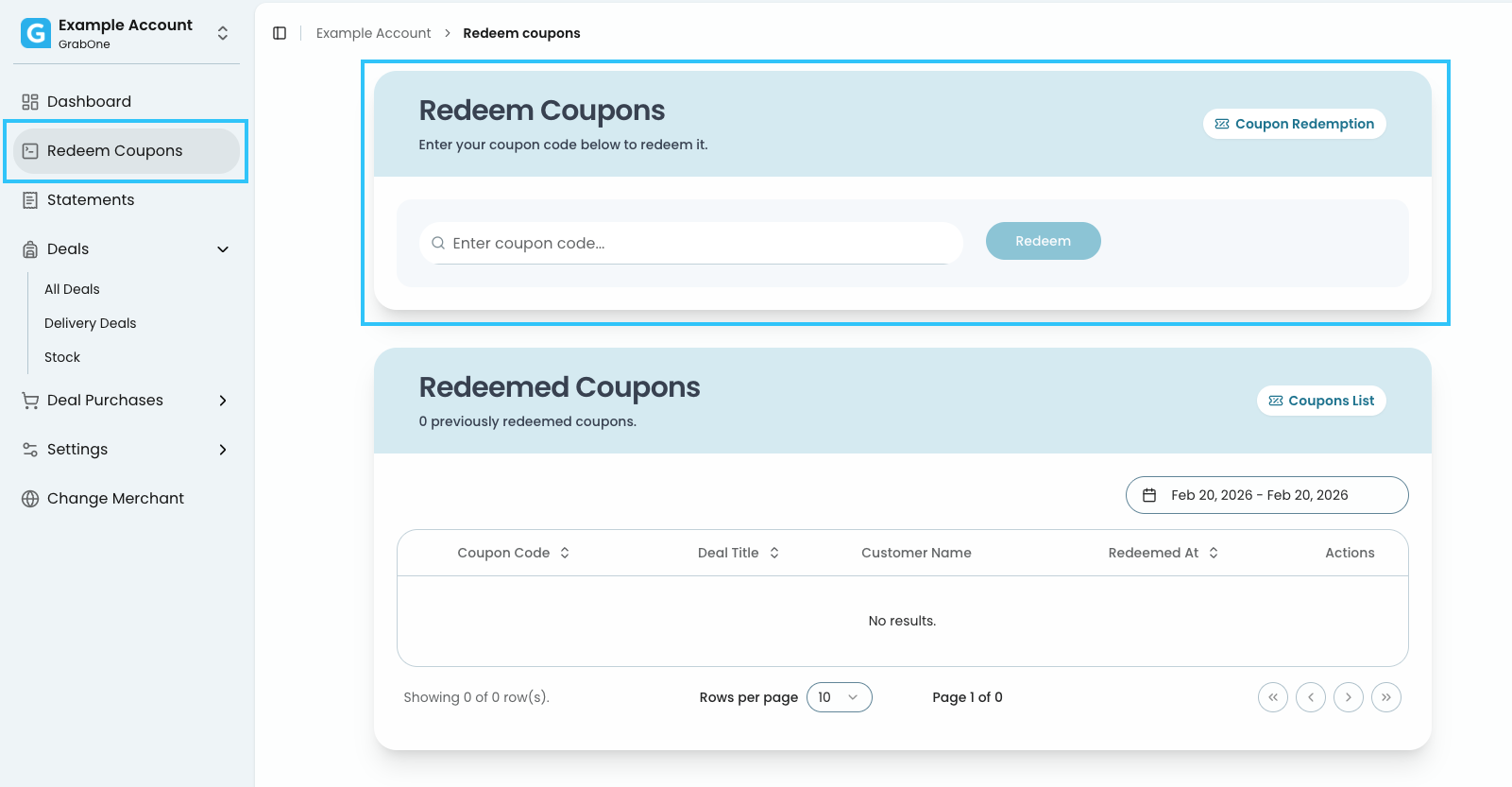 Click on the 'Redeem Coupons' tab