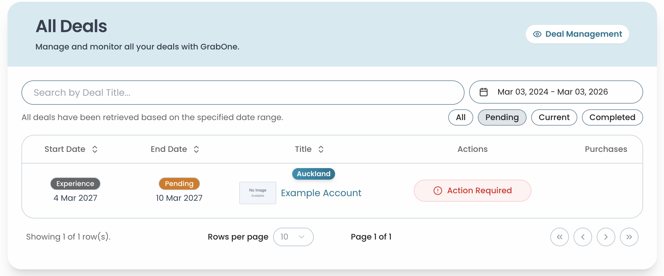 This is the contract between yourself and GrabOne that contains the commercials of the offer going to market. Deal Schedules are a legally binding document, so it’s important that you check them carefully before approving.